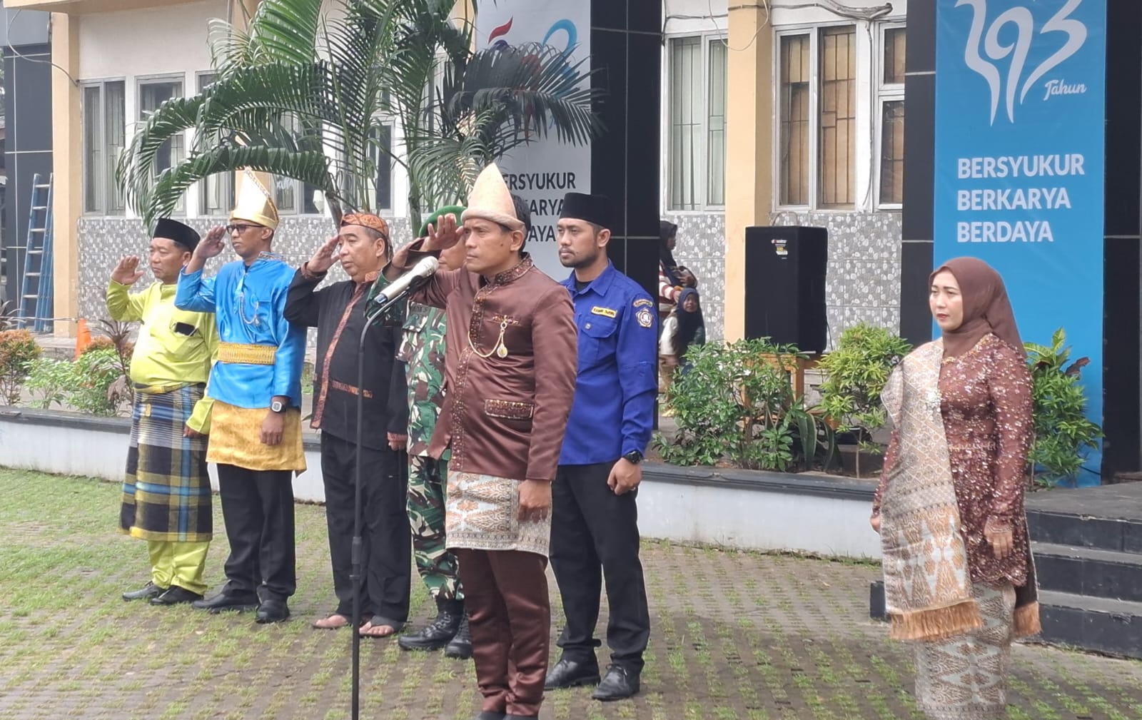 Kegiatan tersebut berlangsung khidmat dan meriah, dengan ciri khas seluruh peserta apel mengenakan pakaian adat dari berbagai daerah di Indonesia.