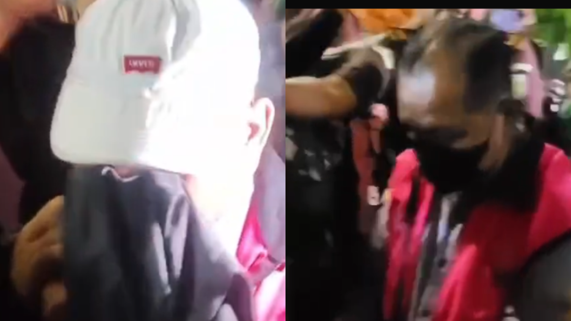Mereka mengenakan rompi pink digiring petugas masuk ke dalam mobil tahanan.