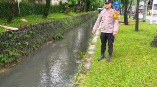 Polsek Panongan Lakukan Pengecekan Daerah Rawan Banjir, Debit Air Kali Citra Raya Terpantau Menurun