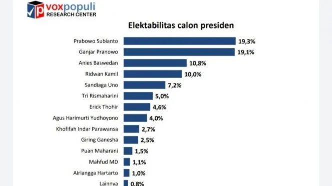 Survei Voxpopuli: Prabowo dan Ganjar Bersaing Ketat di Papan Atas, Anies Tertinggal Jauh